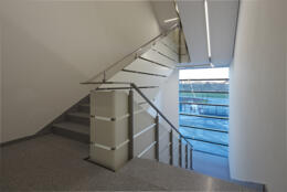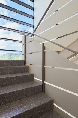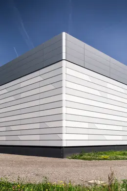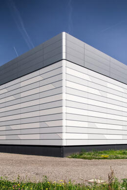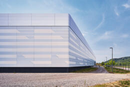 Neubau von Werk 4 mit Produktionshallen sowie Lager-, Werkstatt- und Verwaltungsflächen als 1. Bauabschnitt. Das Werk vereint in seiner Gestalt den Produktionsprozess, das Erscheinungsbild des Bauherrn und seine Umgebung im Voralpenland.