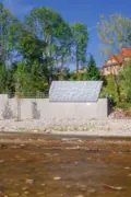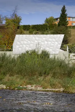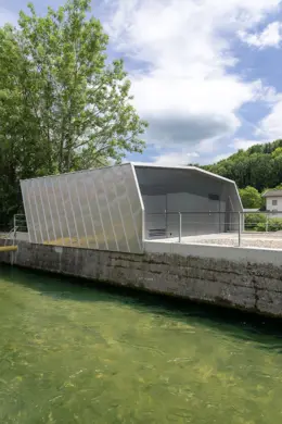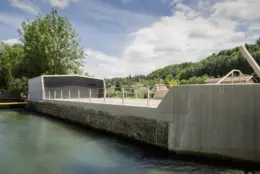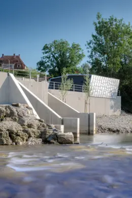 Rückbau des bestehenden und Errichtung eines neuen Wartenhauses mit Betriebs- und elektrischen Funktionsflächen für das parallel erstellte Wasserkraftwerk in städtebaulich exponierter Lage.